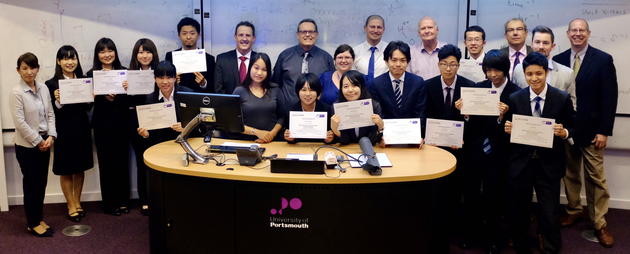 For the second year in a row, students from the School of Pharmacy, Nihon University (NUSP) have traveled to the School of Pharmacy at the University of Portsmouth (UoP) to study about clinical pharmacy practice and education in the United Kingdom. This year 12 students participated in the program that went from August 14th until the 28th. In addition to learning about clinical pharmacy practice and education in the UK, students also had the special opportunity to visit the headquarters of the Royal Pharmaceutical Society in London for a special seminar and tour of their museum.